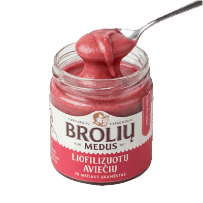 Tīrs medus, aromatizēts ar liofilizētām sastāvdaļām.